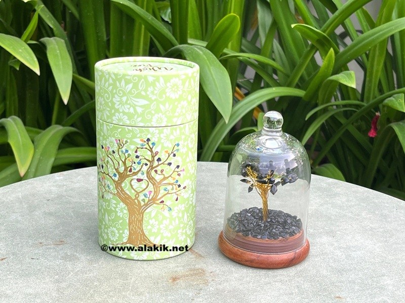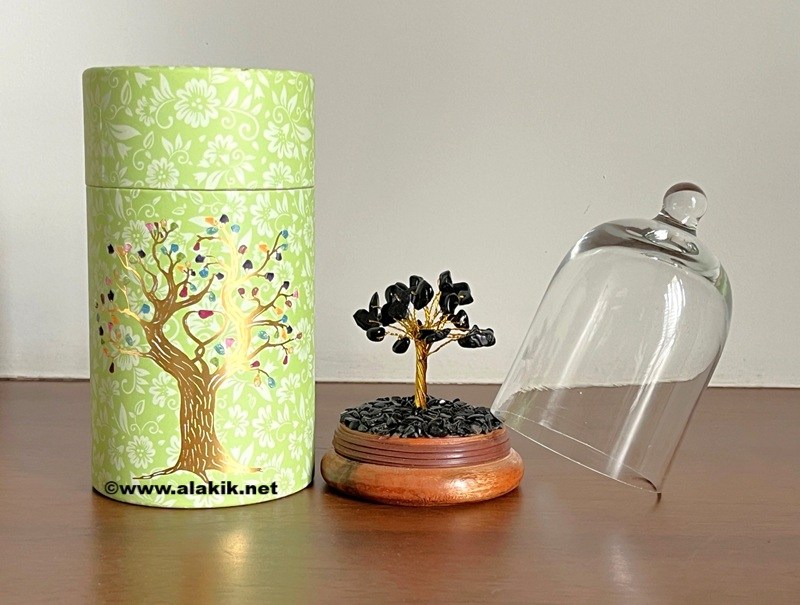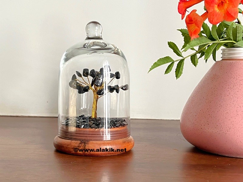 Black tourmaline Crystal Dome Tree to be kept aside bedside, office desk, even on car dashboard is valued for its grounding, purifying, and protective properties, believed to ward off negative energies and provide a sense of security and emotional balance.